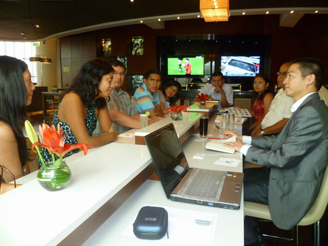 在智利利馬萬豪明天廣場酒店和一批潛在新客人會談