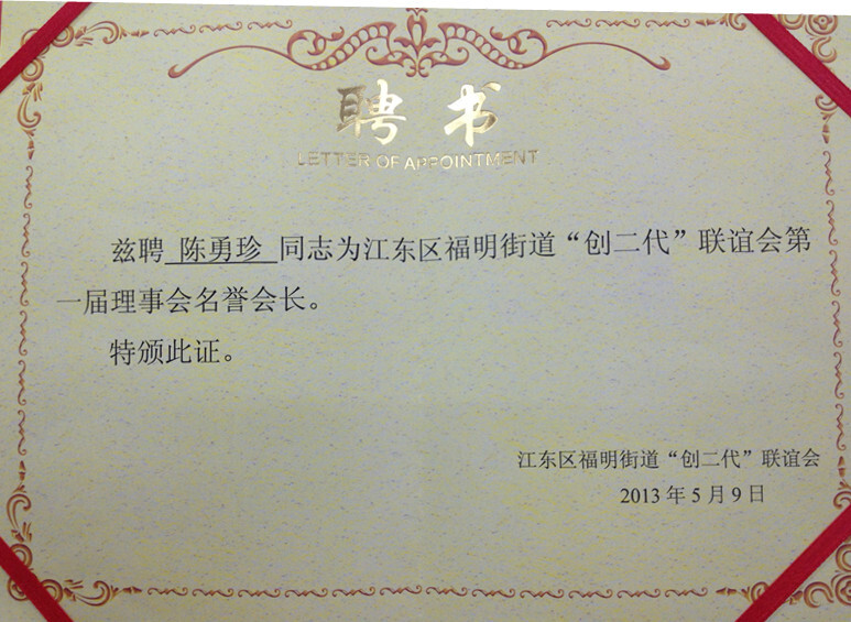 福明街道“創二代”聯誼會成立,陳勇珍被聘為名譽會長