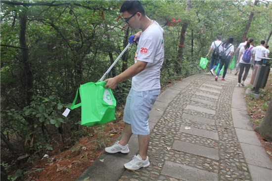 到達半山腰,大家小憩了一會,欣賞山上的風景。也許是迫切想看到更美的景色,優達的一名供應商朋友不作休息,一路登頂,讓公司很多年輕小伙子們自嘆不如。沒過多久,小伙伴們都拎著滿滿一袋垃圾抵達了山頂,當大家往山腳看時仿佛置身于云霧纏繞的仙境中,紛紛拍照留念。
