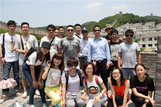 太陽鏡,遮陽傘,防曬霜,想必大伙都一樣不落了。5月25號,賽爾國貿(寧波運營中心)19人的大隊伍,在徐總的帶領下,來到了寧波奉化黃賢森林公園,開始挑戰氣勢雄偉的海上長城!整理隊伍準備出發,這第一個挑戰就來了。原來,從各位下車點到海上長城的起點,要經過一段陡峭的山坡。大伙考慮到今天的主要任務是“不到長城非好漢!”,所以就安排坐特制觀光bus上山!