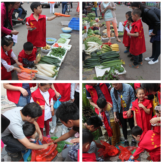 匯合后,村長把10個(gè)小朋友分為紅、黃、藍(lán)三隊(duì)并選出隊(duì)長。接著村長分發(fā)任務(wù)卡,小朋友們將根據(jù)任務(wù)卡開始今天的第一個(gè)艱巨的定向任務(wù)——獨(dú)自購買食材和尋找野炊道具。在楂林菜市場里,這些小朋友們吸引了眾多過路者的目光,每組小朋友都在認(rèn)真挑選食材,詢問價(jià)格,和老板們討價(jià)還價(jià),像個(gè)小大人。在村長的裁判下,紅隊(duì)小朋友表現(xiàn)最棒,買菜最多花錢最少。