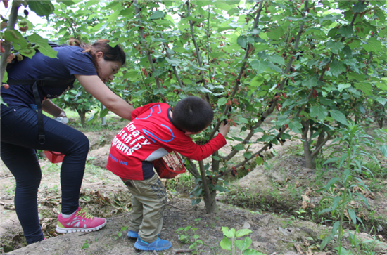 最后,大家集體去采摘桑果,每個(gè)小朋友都親自采摘滿滿的一籃。