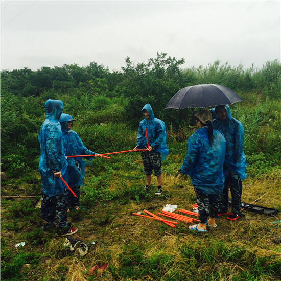 第二天一大早,在教練的帶領下,學員們在大風大雨中玩起了同心協力吹氣球的游戲。贏取眾多食材后,大伙紛紛展示廚藝,制作出了一道道“美食”:水煮淡菜、水煮蟶子、大白菜炒肉……午飯過后,大家開始打道回府。