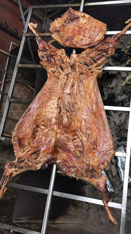 此次部門活動的重點就是烤全羊大餐。由于醫(yī)院要求必須空腹體檢,所以很多一早上都沒有進食的小伙伴們很快就開動了起來。主要負責烤烤全羊的是一位店里的大爺,那手法甚是嫻熟,一頭羊被烤得可謂是色香味俱全,再加上碰到一群已經餓的前胸貼后背的小伙伴們,烤全羊一上桌就被大家一掃而空。之后再配上當?shù)氐霓r家樂美食,一頓美味的大餐很快就在大家的歡聲笑語中被消滅了。