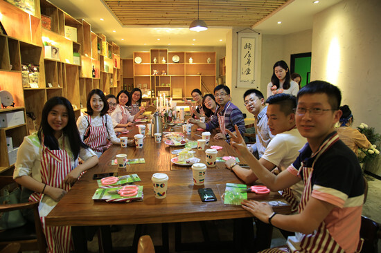 下午2點(diǎn),寧波的講師們來到了一家咖啡廳,咖啡廳的走廊里,就看到了一塊我們公司專屬插花課畫報(bào),畫報(bào)一旁,簇?fù)碇魇狡贩N的花,淡淡的花香撲面而來,沁人心脾,美麗的心情溢于言表。走進(jìn)咖啡店,花藝師早已為大家準(zhǔn)備好了插花素材:布,剪刀,絲帶等,整整齊齊地放在桌面上。講師們陸續(xù)到齊,帶上圍裙,點(diǎn)上蠟燭,一邊聽年輕美貌的花藝師講解花的品類,一邊跟著剪枝修葉,動(dòng)起手來。花朵妖嬈盛放,講師們聽著音樂,品味下午茶,打點(diǎn)著自己的DIY花束,是一種享受,更是一種藝術(shù)的熏陶。有趣的是,插花活動(dòng)里驚現(xiàn)4名男講師,他們可有自己一門小心思呢,等著包好花回家給老婆(女友)大人獻(xiàn)殷勤!