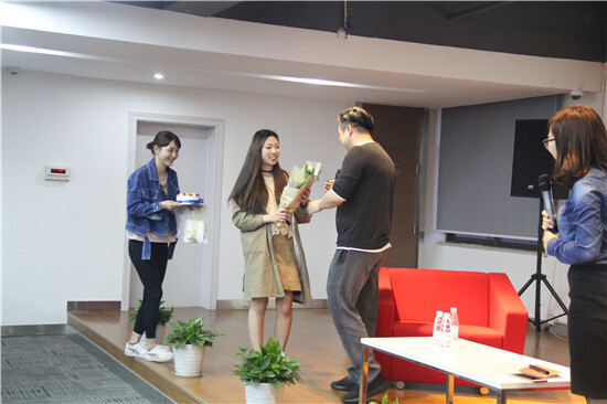 最后聊到家庭生活日常,生活中的雷總隨意親切,和多數小伙伴們一樣宅時宅,瘋時瘋。談及自己的另一半時,他覺得彼此珍惜最可貴。訪談尾聲,電商部的小伙伴們送上了鮮花和蛋糕,給了嘉賓雷總大大的驚喜與感動,在掌聲和祝福聲中雙月談圓滿結束。
