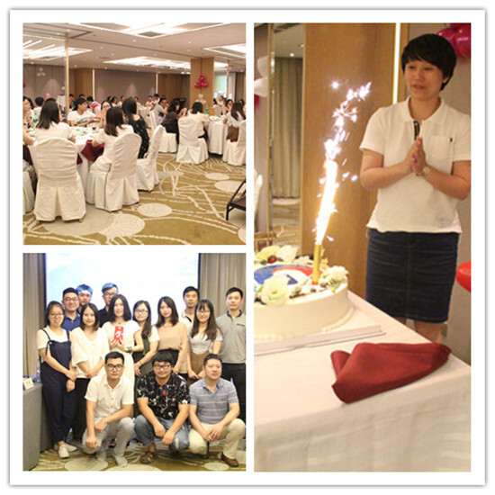 晚宴開始,大家齊唱生日歌,一起慶祝GREEN TIME的一周歲生日,三位七月的壽星同謝總一起切蛋糕。各部門同事積極為綠時獻(xiàn)唱,最終在陳為的一曲《喜歡你》中結(jié)束了本次年中會議。