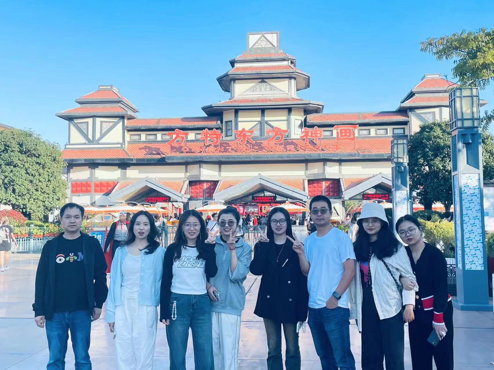 早上十點,兩輛車載著十位小伙伴從公司出發,于十一點到達第一站——鳴鶴古鎮。古鎮最大的特點是沿湖而建,溪水穿鎮而過,兩邊都是保存較好的古建筑,極具江南水鄉特色。天氣也十分給力,暖陽相伴,大家沿著古鎮小路走走逛逛,坐在外婆的家二樓,點一杯古鎮咖啡,一起玩玩誰是臥底,真是愜意。在一片歡聲笑語中,我們的第二站之旅開始了。下午四點,小伙伴一行來到了方特東方神畫,開始了園區的山海奇幻夜之旅。恐怖的音樂,恐怖的燈光,恐怖的場景,無一不暗示著膽小者慎入。大家在廣場看舞臺演出,體驗驚險刺激的鬼屋(小心NPC突然出現嚇人)和過山車,又和帥氣的、美麗的NPC合照。四個小時下來,我們筋疲力盡地在廣場看完NPC的游行后,結束了充滿歡樂的一天。期待下一次團建!
