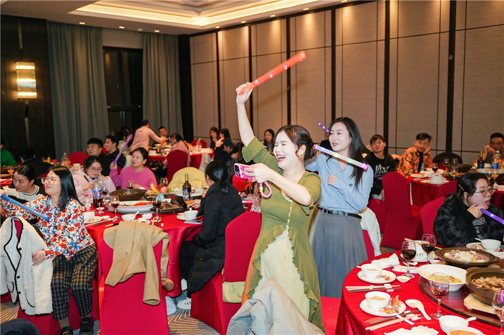 一入會場,映入眼簾的就是精致的舞臺和提前準備好的點心與飲品。在大家沉浸在美食的時候,第一個任務來了——臨時組隊準備周年慶表演節目,短短三個小時的彩排時間,不僅增加了同事們之前的默契,更拉近了心與心之間的距離。讓大家忍俊不禁的舞蹈、幽默卻又飽含意義的小品、激情澎湃的唱跳、讓人眼前一亮的走秀、惟妙惟肖的配音……一個個節目承載著大家背后的努力,也記錄著每個人臉上的笑容。既然是周年慶,自然少不了搶紅包環節,有人喜笑顏開,有人唉聲嘆氣,苦惱是不是該換個手機了或者是運氣真差。最后在領導的歌聲中圓滿結束。