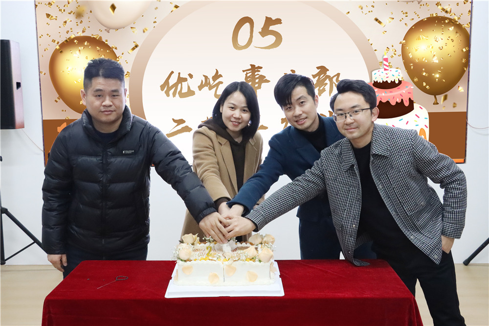 首先,黃麗總發表致辭,詳細闡述了“屹”字背后的含義,同時回顧了過去兩年優屹事業部在發展歷程中所取得的顯著業績。接下來是第四季度優秀員工頒獎環節,大家對獲獎員工表示了誠摯的祝賀,祝愿他們在未來的日子里,持續創造卓越業績。隨后是本次活動的重頭戲,黃麗總、葉晃、吳旺龍、李俊杰等四位合伙人上臺,攜手切蛋糕。在溫馨的歌聲中,大家一同分享這份喜悅,同時寄托新年更加美好的期盼。