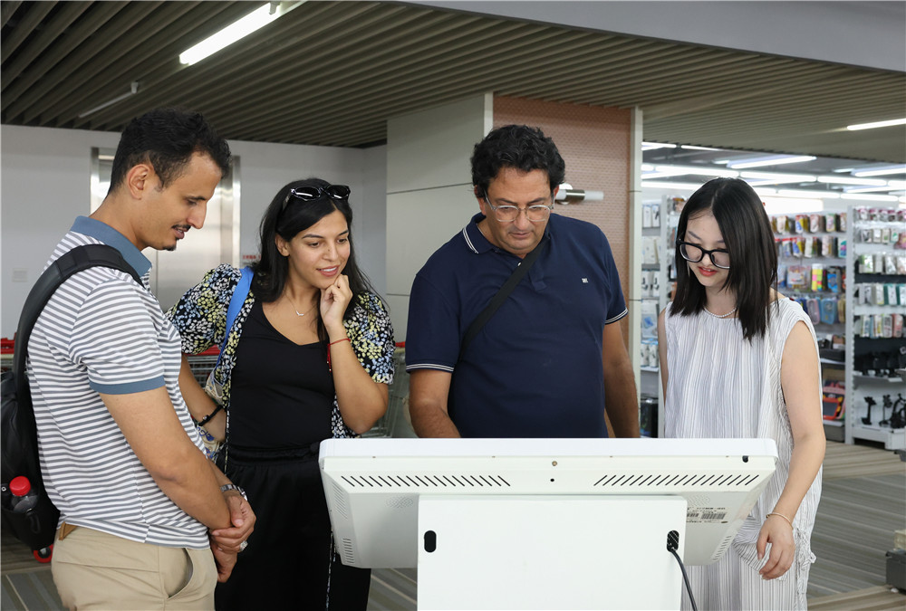 研學團一行首先參觀了企業文化展廳。饒思斯詳細介紹了集團的發展歷程、業務生態和戰略布局等方面情況,特別是集團對摩洛哥市場的深入布局。研學團成員對集團近年來持續穩定的增長勢頭以及摩洛哥業務布局的深度表示了由衷的驚嘆。隨后,研學團一行走進樣品間進行參觀,深入了解了集團的主要產品、業務模式、市場動態,并親身體驗了“賽爾在線 ”供應鏈服務平臺操作的便捷性。大家對樣品間產品的豐富多樣給予了高度評價,稱其為義烏國際商貿城的縮影,并興奮地拍照留念,分享給遠方的親友。