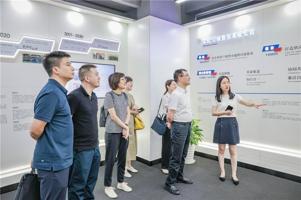 龔光輝副局長一行首先參觀集團企業(yè)文化展廳和產(chǎn)品展示中心。行政副總方芳重點介紹了集團發(fā)展歷程、生態(tài)布局、管理機制、企業(yè)文化建設等情況,來訪團一行對集團長期可持續(xù)發(fā)展的經(jīng)營發(fā)展邏輯和有效實踐表示充分贊賞,并饒有興趣地參觀了產(chǎn)品展示中心。