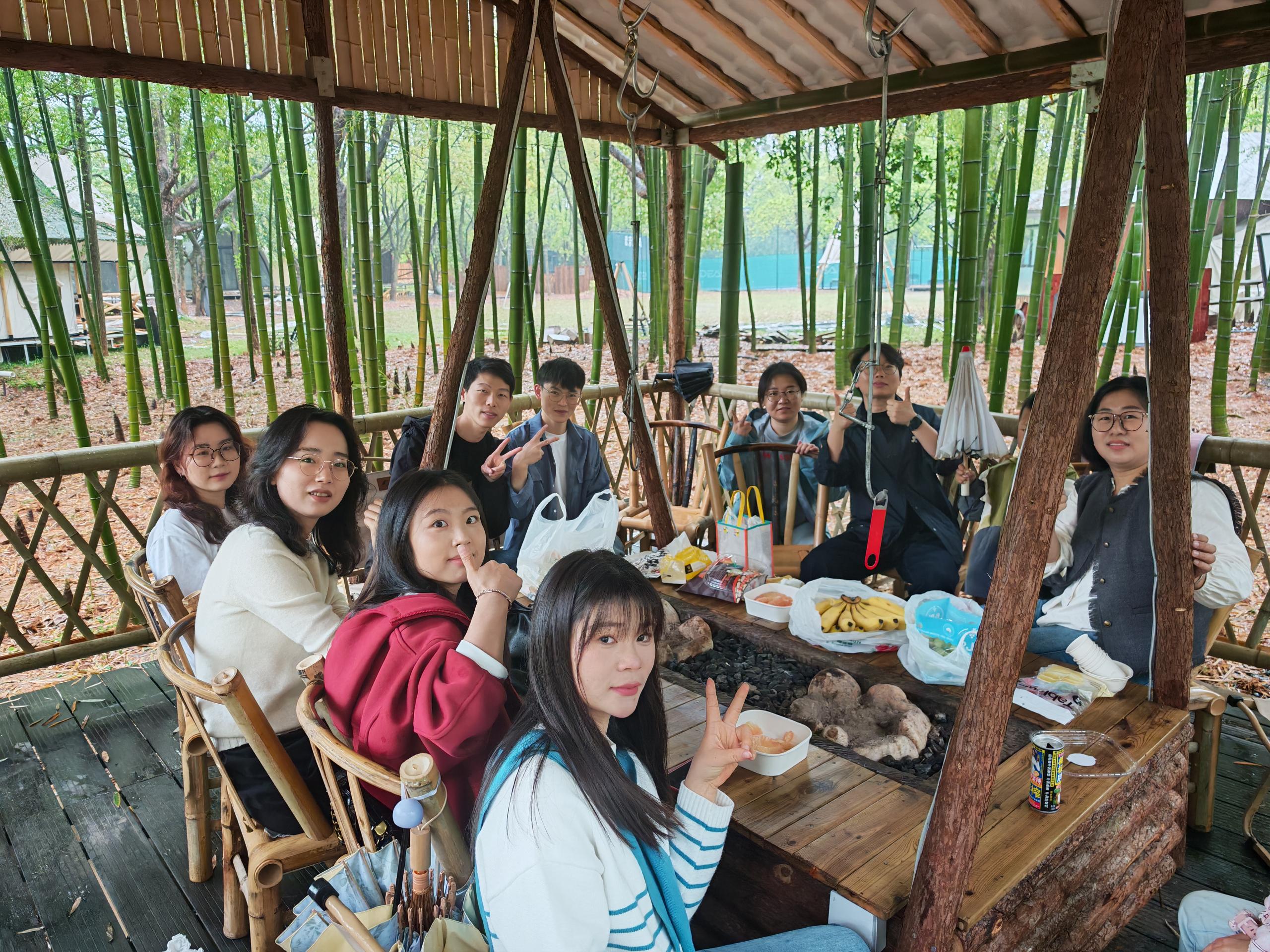 隨后,大家移步至 “棲城鹿” 竹林烤肉場地,享受豐盛的韓式烤肉午餐。在竹林的清幽環(huán)境中,成員們圍坐一起,一邊品嘗美食,一邊分享工作中的點滴趣事,部門氛圍其樂融融。