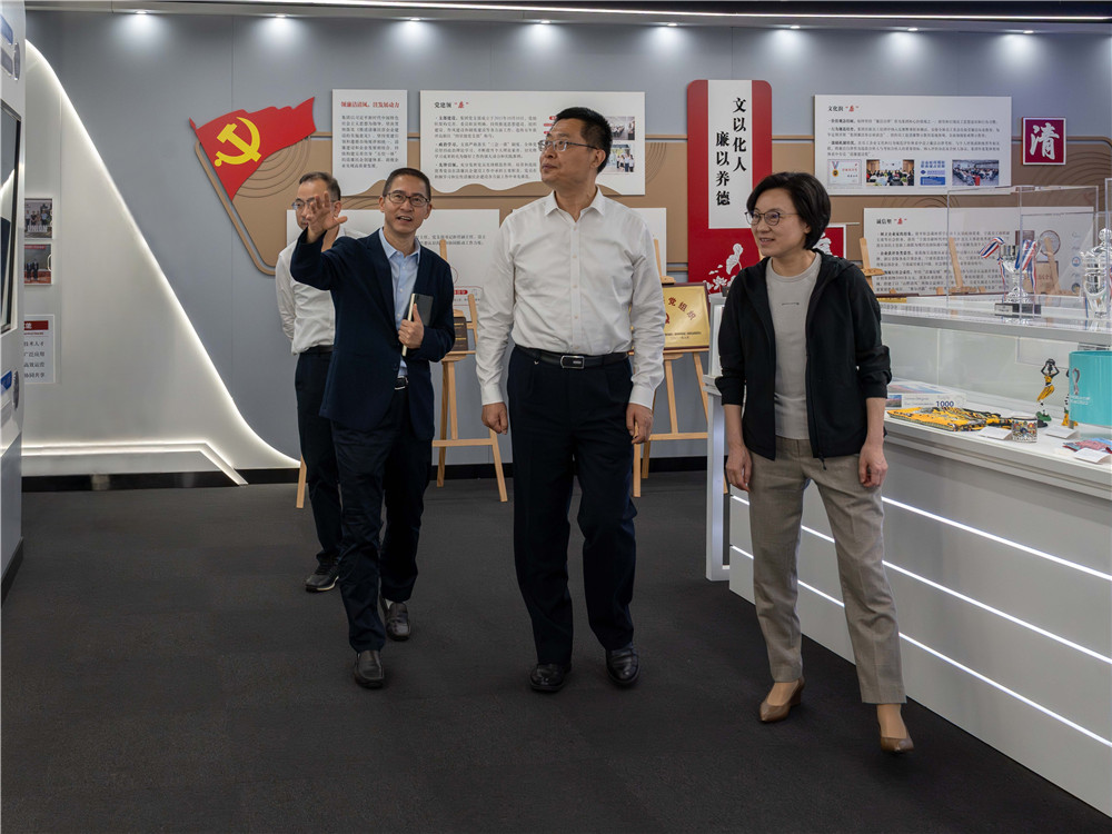 在集團文化展廳,盧山副省長全面了解集團的發展歷程、業務版塊和管理模式,特別是在合伙人機制和共生型組織建設方面的特色做法,對賽爾的管理運營模式以及取得的成果表示肯定。徐平炬董事長重點介紹了集團在當前美國關稅政策影響下的業務經營情況和的應對舉措。盧副省長表示政府將加大政策扶持力度,幫助企業應對當前復雜的國際貿易形勢,推進高質量發展。