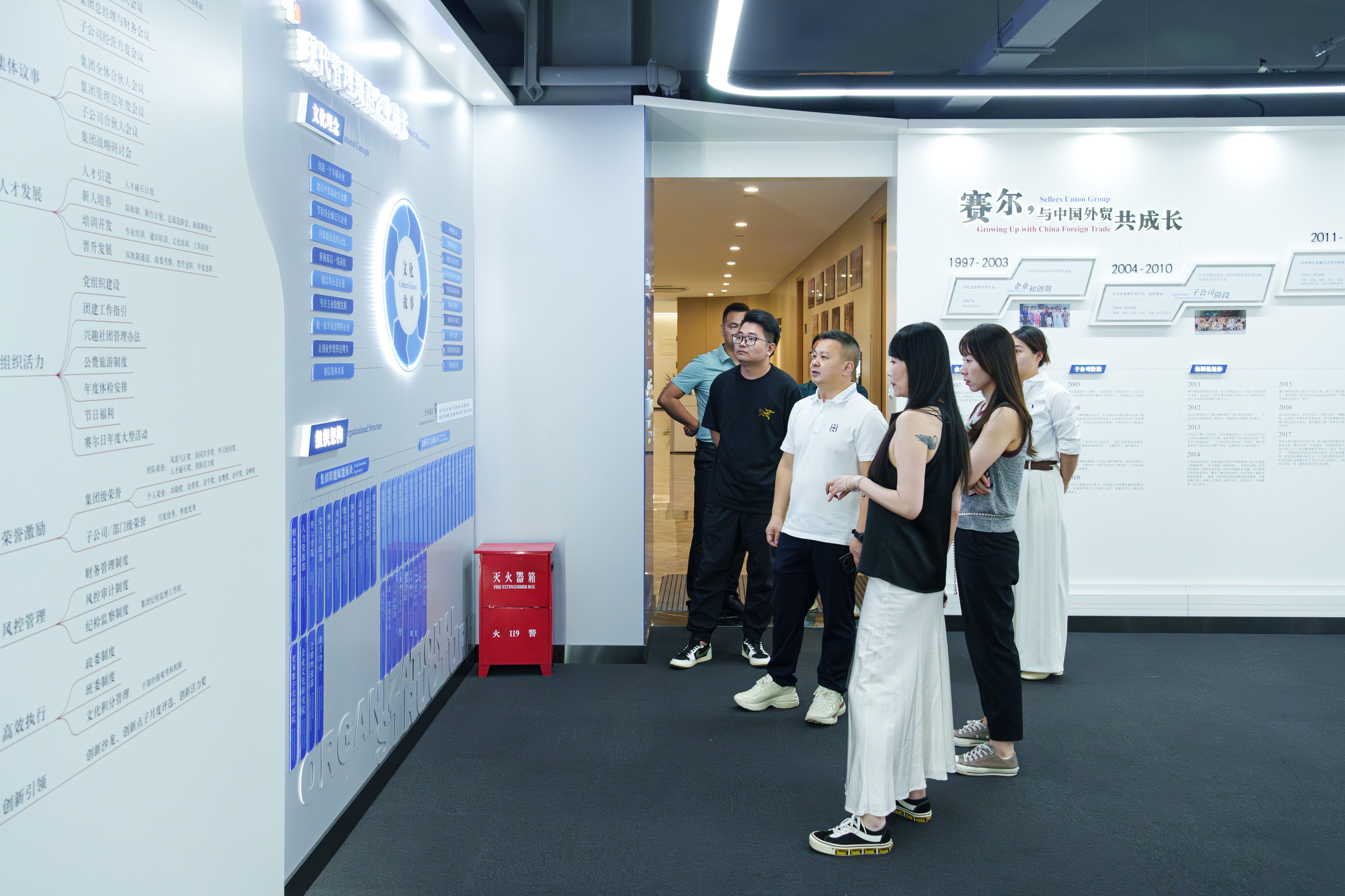 來訪團一行首先參觀了集團企業文化展廳詳細了解集團的發展歷程、業務生態和社會責任實踐。每一個環節的嚴謹、每一處研發的投入、每一份對品質的執著,都生動地訴說著賽爾集團穩步高質成長的密碼,給Wayfair貴賓們留下了深刻而具體的印象。